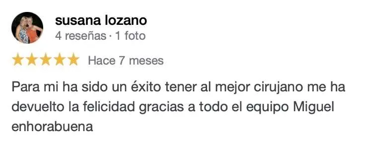 Te explicará el preoperatorio, los riesgos derivados de la cirugía y qué tienes que hacer para evitarlos. Además, te enseñará fotos de antes y después de otros pacientes con un problema similar al tuyo para que veas de forma realista lo que puedes lograr.