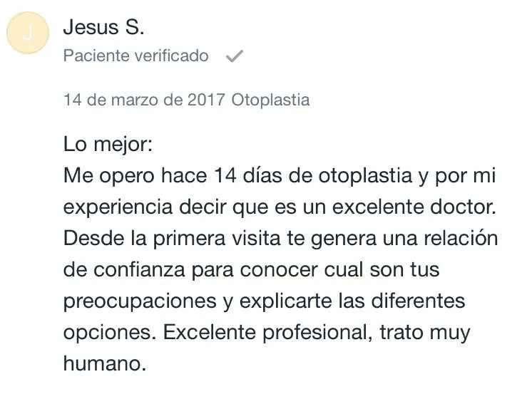 La otoplastia es una cirugía ambulatoria, rápida e indolora, que remodela las orejas de forma definitiva.